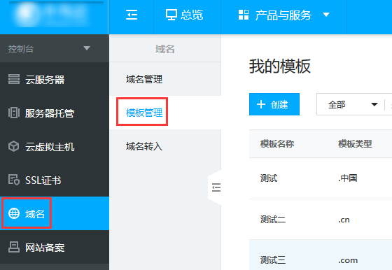 域名实名认证流程登录用户中心->域名管理->模板管理。