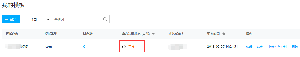 提交成功后实名认证状态进入审核中,先由我司在1-3个工作日内进行审核,我司审核通过后,国内模板还需等待CNNIC复审,一般在3-5个工作日内完成, 若审核失败,请核实模板信息是否正确。