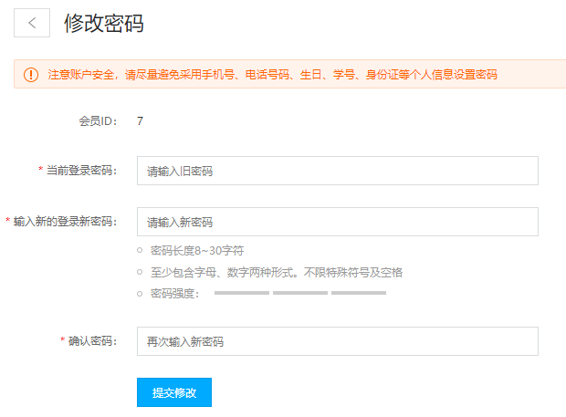 安全保障 > 修改密码