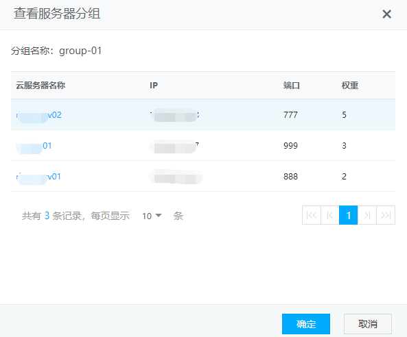 可修改的选项有:分组名称,增/减服务器数量,修改服务器端口,轮训权重。