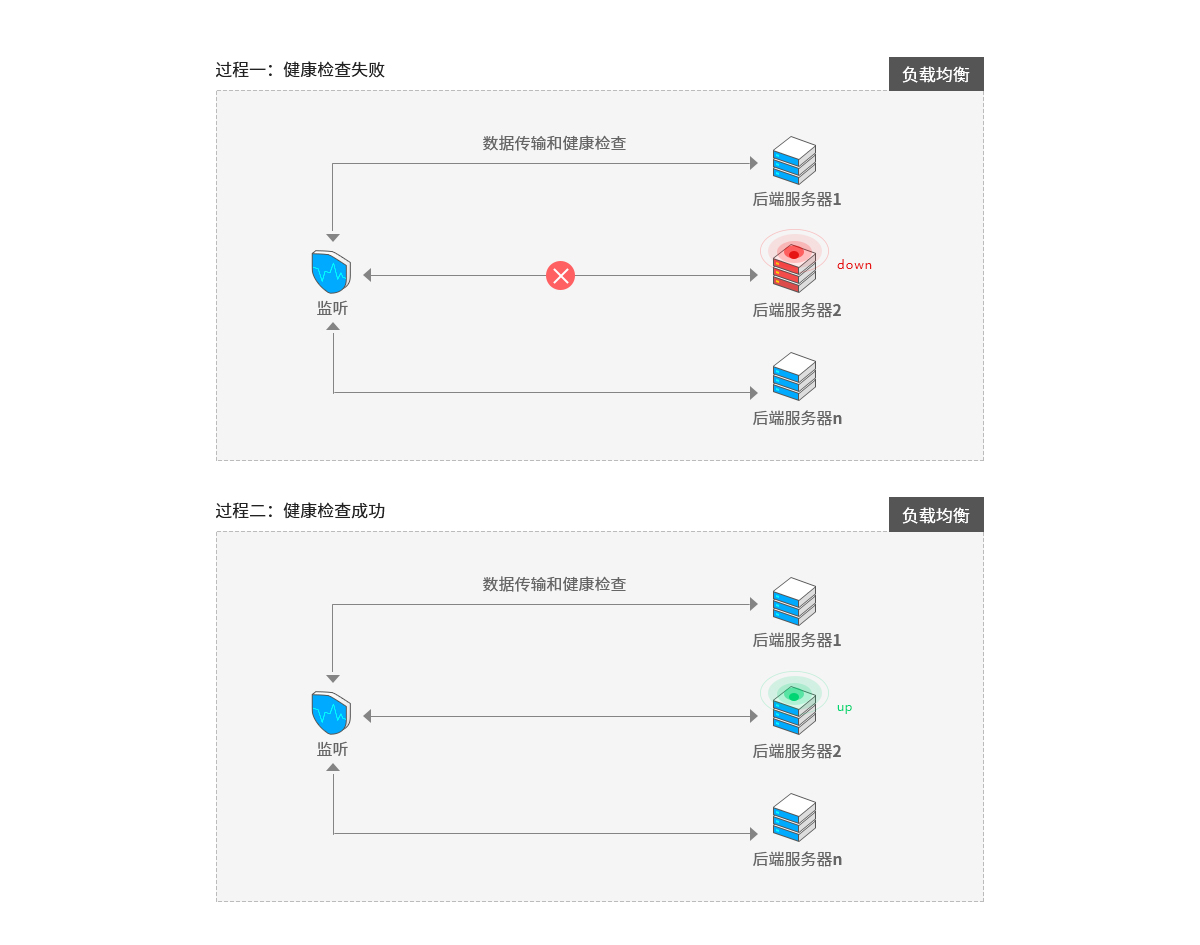 健康检查是负载均衡通过用户自定义的方式来检测后端云服务器的健康状态,从而剔除后端故障节点和纳入后端恢复正常节点到集群,从而保证服务的高可用。